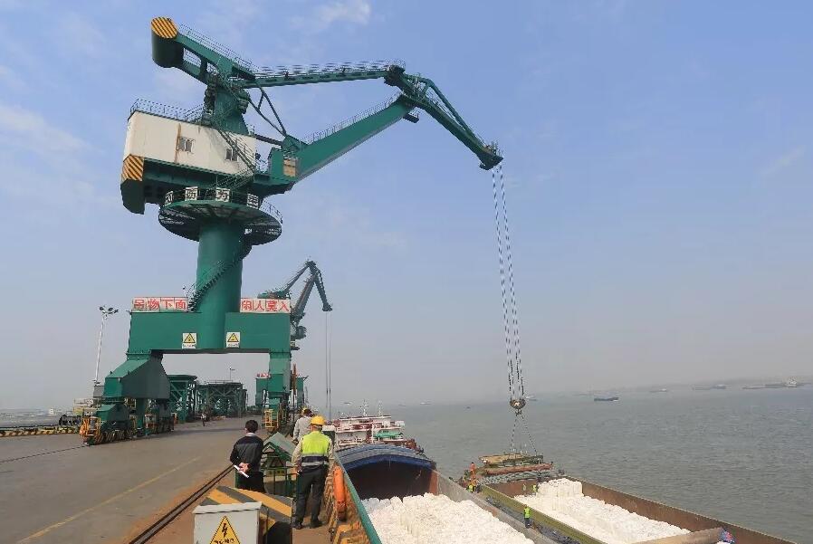 在距离园区不远的码头,一艘艘刚刚靠岸的万吨货轮满载着从加拿大、智利等国进口的桉树纸板,和国内四川等地的竹浆原料(上图)。码头的起重臂不断起吊,将原料送往1公里外的理文集团车间。