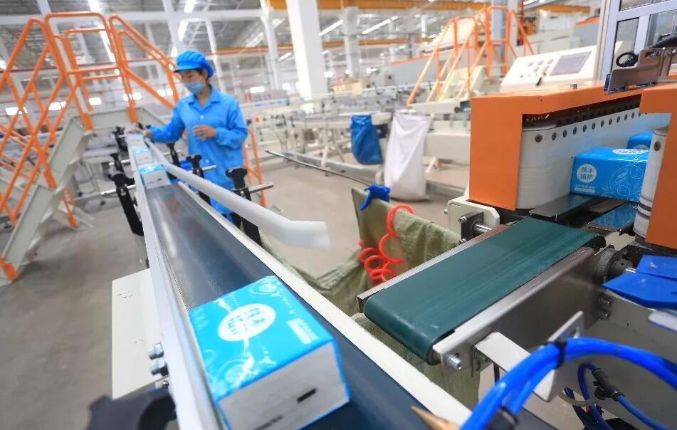 3月31日这天,可心柔工厂里,该款售价为29.9元的纸巾正一包包通过流水线,进入隔壁物流车间。