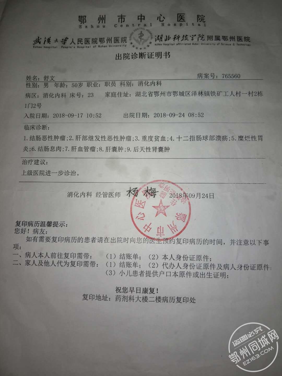 个人情况: 我叫舒文,今年50岁,家住湖北省鄂州市泽林镇工人村一村二栋1门2号|